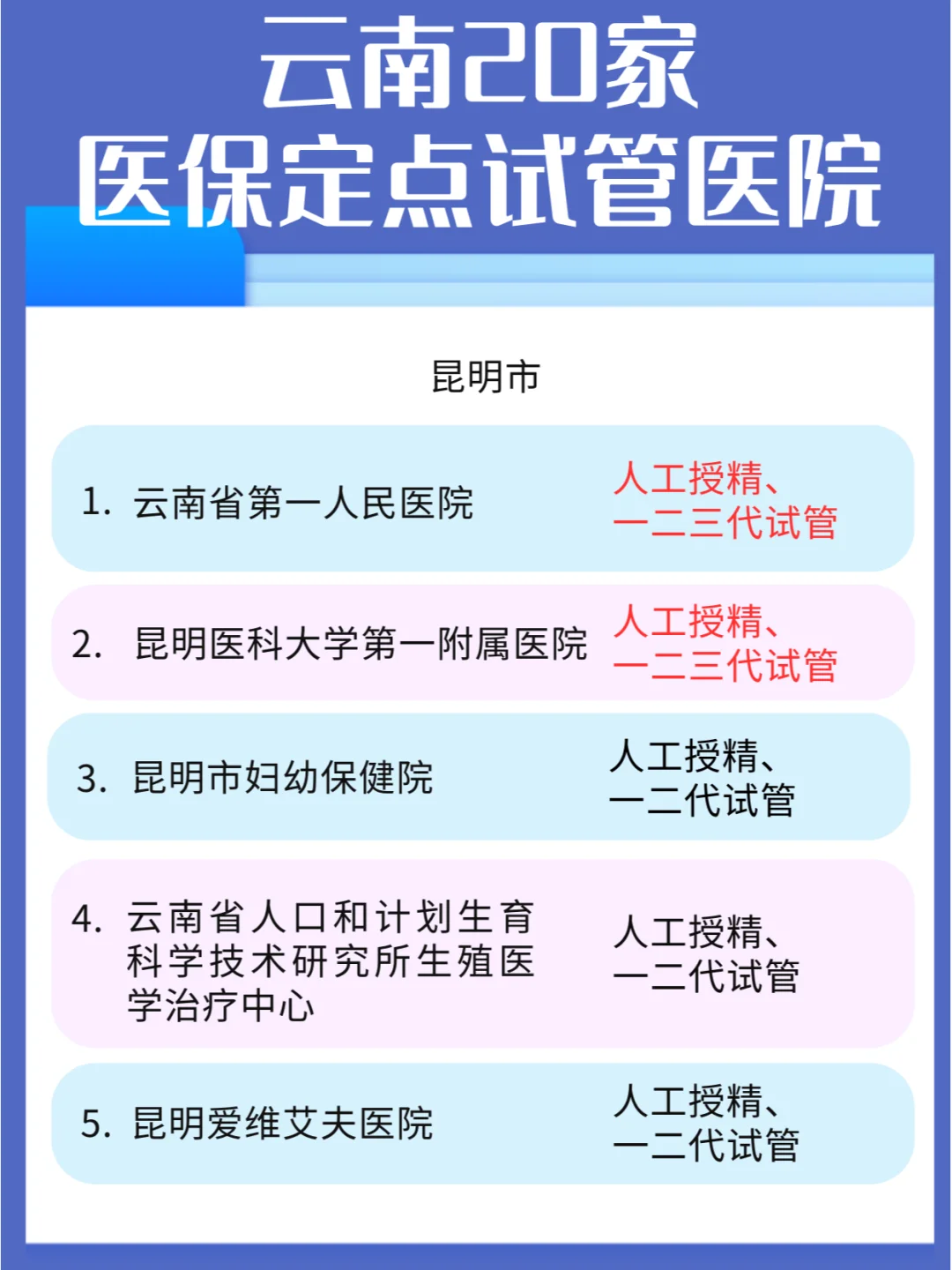 云南省20家医保定点试管医院清单